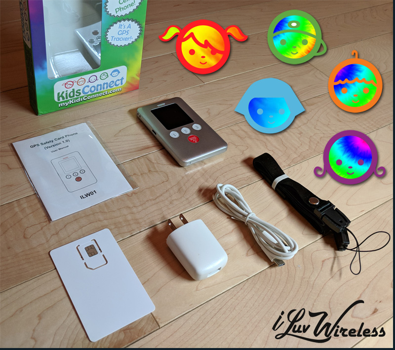 The KidsConnect GPS tracker phone comes with everything you need to get started which includes the GPS tracker phone, phone charger and cable, lanyard, SIM card and user manual.